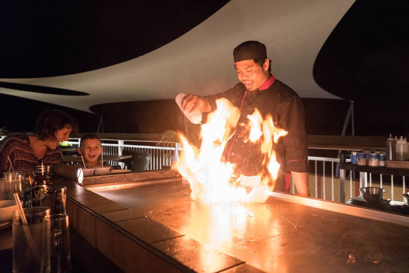 鉄板師の夕食を食べます新鮮なシーフードのためにミズは私たちのお気に入りでした。ウォーターフロントを見下ろすカマナ湾に位置するアジア料理を注入したおいしい地元でインスピレーションを受けた料理を提供しています。
