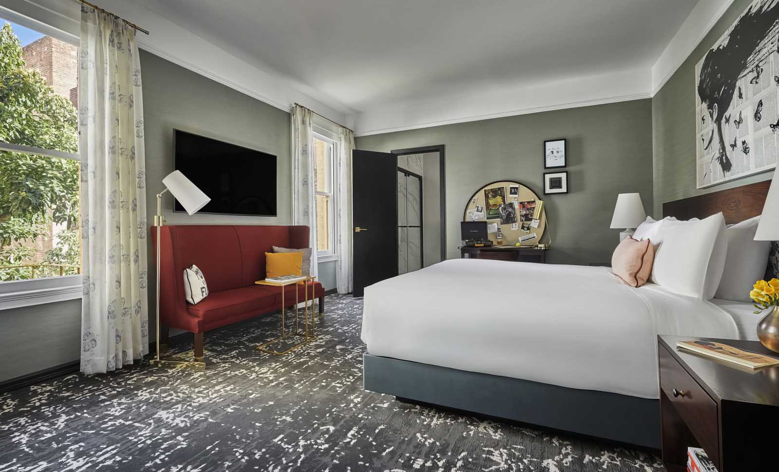 写真はホテルの紋章の厚意によるものですホテルの紋章サンフランシスコは絶対的な芸術作品です。このブティックホテルは、ビートエラ世代に触発されており、文学の世界にうなずきます。ホテルのエンブレムには、毎週の詩イベント、オリジナルのアートワーク、ライブミュージックがあります。ホテルの周りにたくさんの本が隠されていることは言うまでもありません。部屋でさえ、すべての客室の壁にスタイリッシュにぶら下がっているアートワークがあります。ホテルのエンブレムは、豪華なアメニティがたくさんある感動的なブティックホテルを望んでいるクリエイティブな旅行者にとっては完璧です。文学のテーマは非常に印象的であるため、このガイドにはホテルの紋章が含まれています。