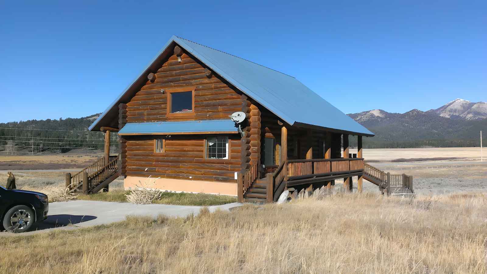 2。山の景色とラップアラウンドポーチを備えたリモートウエストイエローストーンキャビン