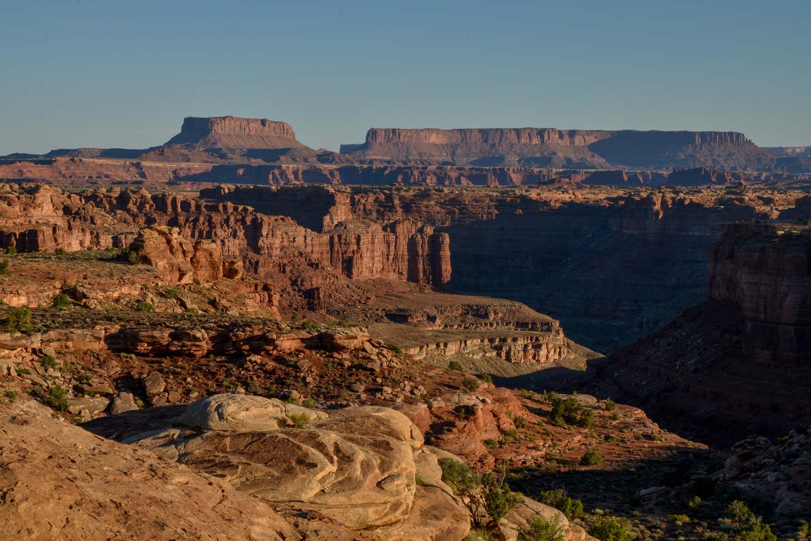 最終的な見落としまで続けることができれば、お勧めします。空の島の端に立って、あなたは白いリムキャニオンとグリーンリバーの景色で報われます。グランドビューポイントトレイルは、特に人気のあるサンセットハイキングです。赤い風景は夕方の壮大な景色です。