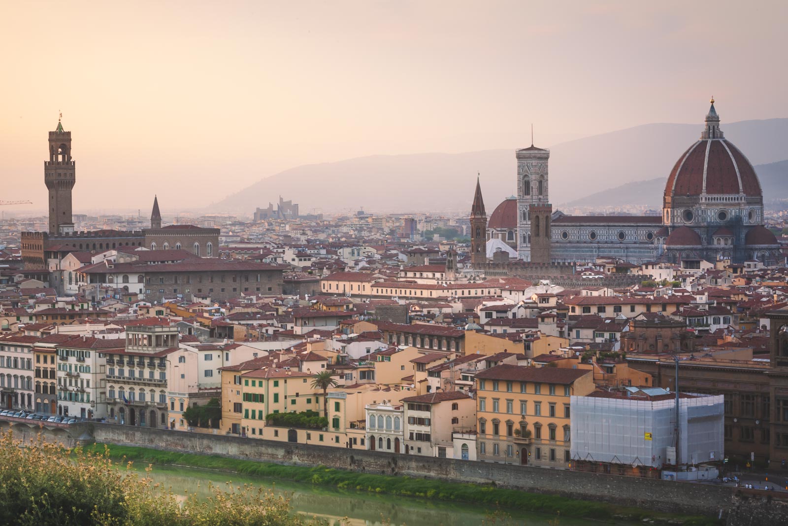 ユネスコのフィレンツェの歴史センターは、イタリアで最もロマンチックな都市の1つとして知られており、ミケランジェロ広場のアルノ川の心を込めて景色を眺めることができます。