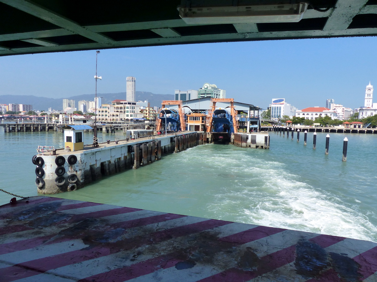 ジョージタウンを出発するフェリーからの眺めペナン島と本土の間には橋がありますが、バターワースとジョージの町の間を到達する最速の方法はフェリーです。
