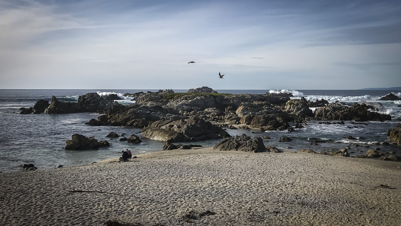 恋人たちは、17マイルのドライブに到達する前の私たちの最初の停留所でした恋人たちは、フォトジェニックな岩のような露頭を備えた絵のようなビーチです。地元の人々がたむろしてピクニックをしたり、ビーチバレーボールをしたり、波をとったりするのは人気のある場所です。