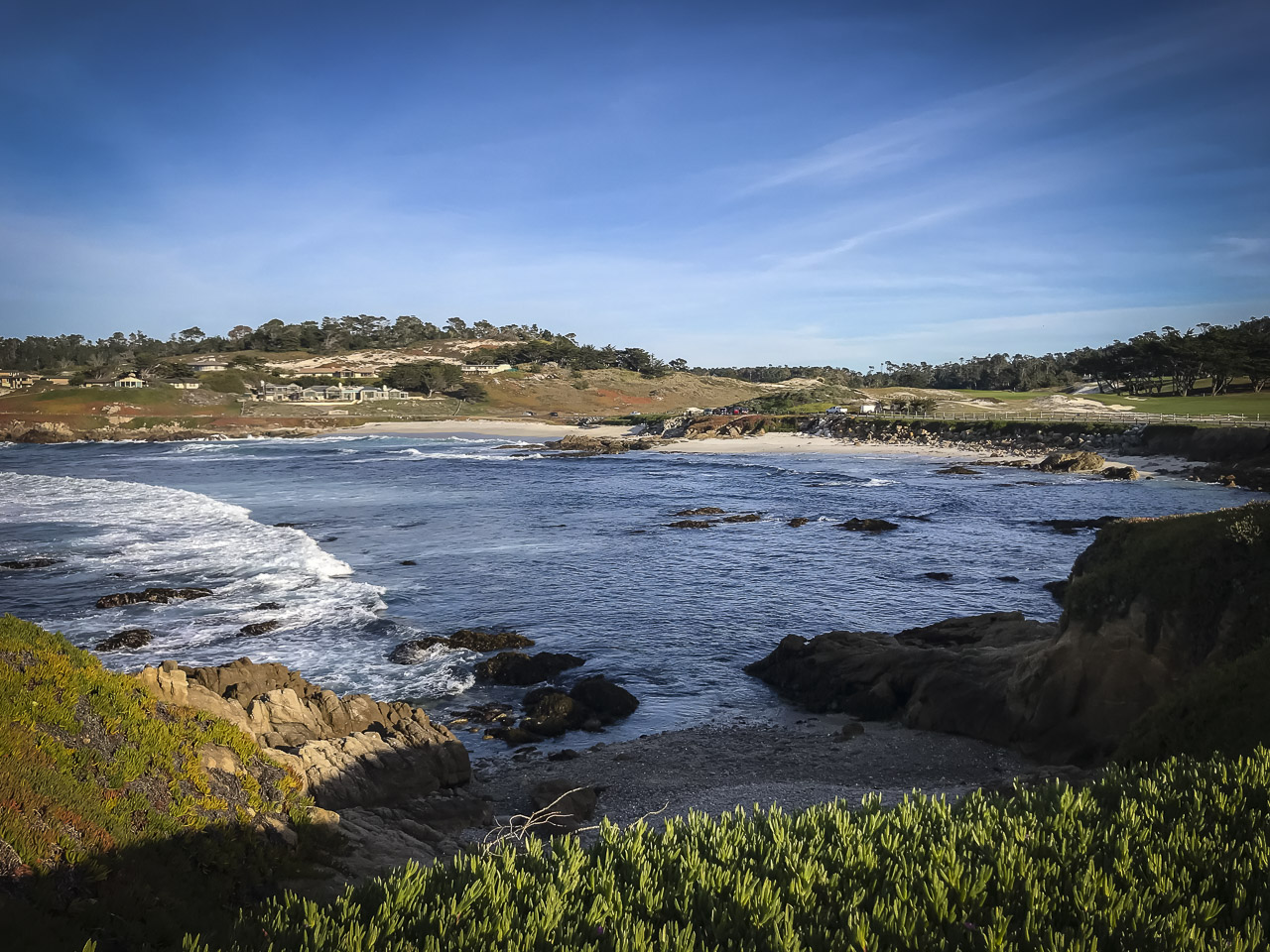 ペブルビーチとペブルビーチゴルフリンクのロッジを通り抜けた後、私たちは静かな後ろの通りを通り抜けて宿泊施設に向かって歩きました。