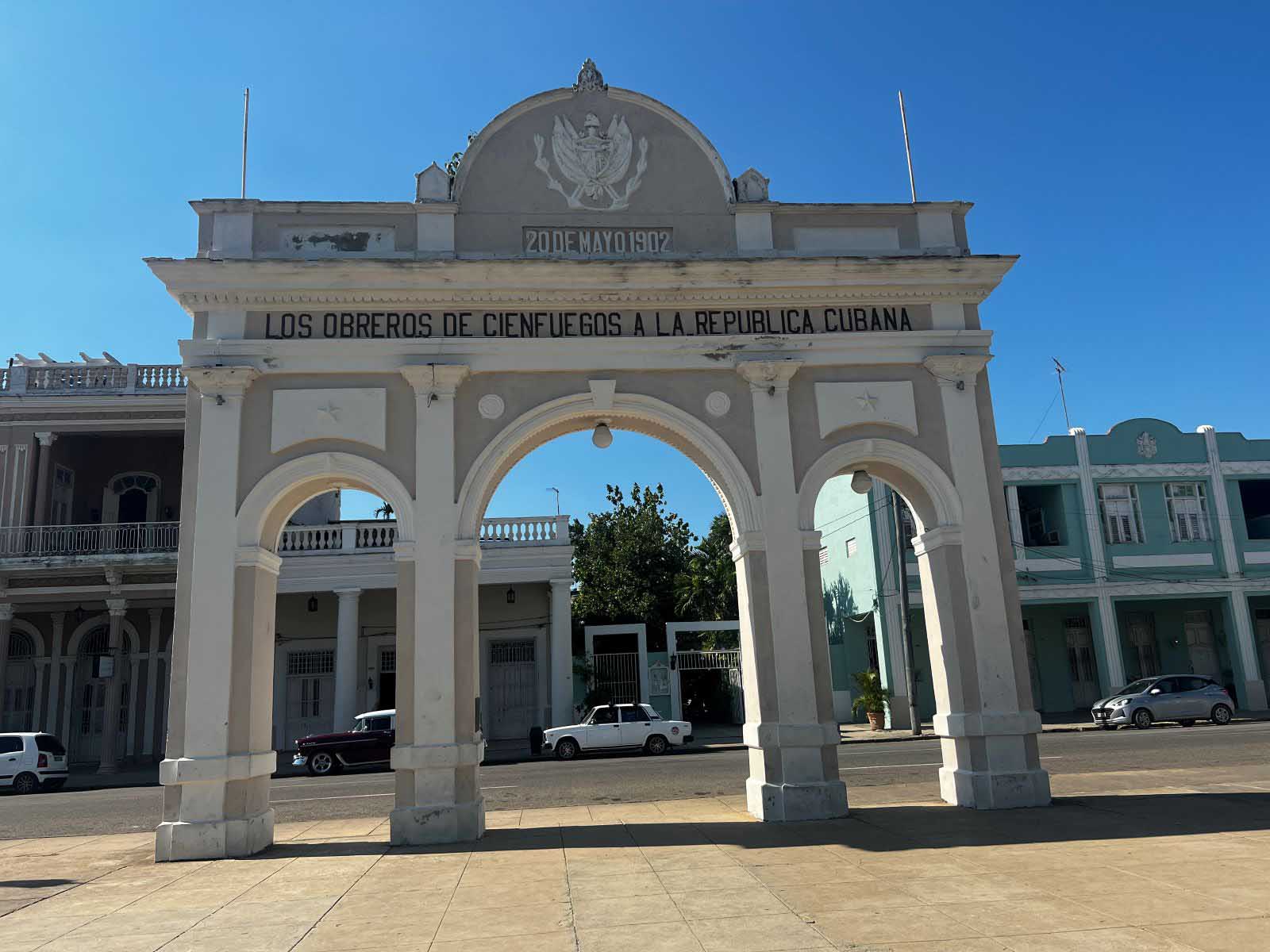 トリニダードのすぐ西にあるキューバの南海岸にある小さな町であるCienfuegosの遺産は、建築や都市計画でさらに検出できます。メインシティスクエアには、アークデトリオンフのミニチュアバージョンがあります。 Parque Jose Marti。