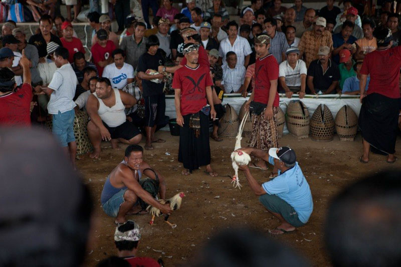 2人のルースターの所有者が戦いの準備を始めた後、誰もが「ソツ!sotu!sotu!」のようなものを叫んでいました。プトゥは後に、これが誰かが他の誰かとアイコンタクトをし、「ソツ」が南にある南や北のようなもの(雄鶏の開始位置)のようなものにお金を置くことができる「外部賭け」であると説明しました。