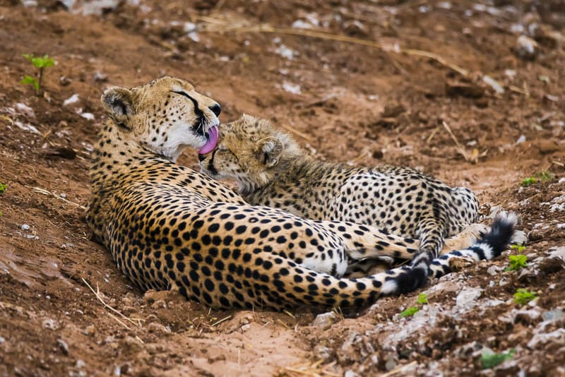 マザーチーターがカブをきれいにしますタンザニアよりも野生生物のサファリのために地球上にもっと良い場所があるとは思わない。