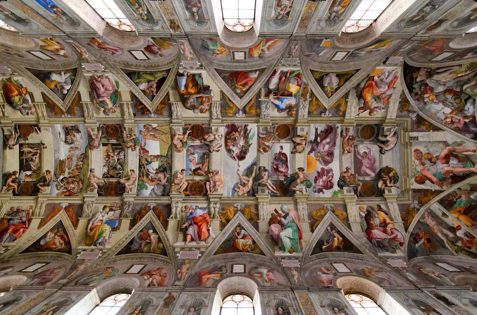 15世紀に教皇6tus IVによって委託されたことは、すべてのローマの記念碑の象徴になりました。ミケランジェロは壁を飾る唯一のアーティストではありませんでした。チャペルは、ボッティチェッリ、ペルージーノ、ガルランダイオ、ロッセッリなど、他のルネッサンスのアーティストによるフレスコ画を特徴としています。