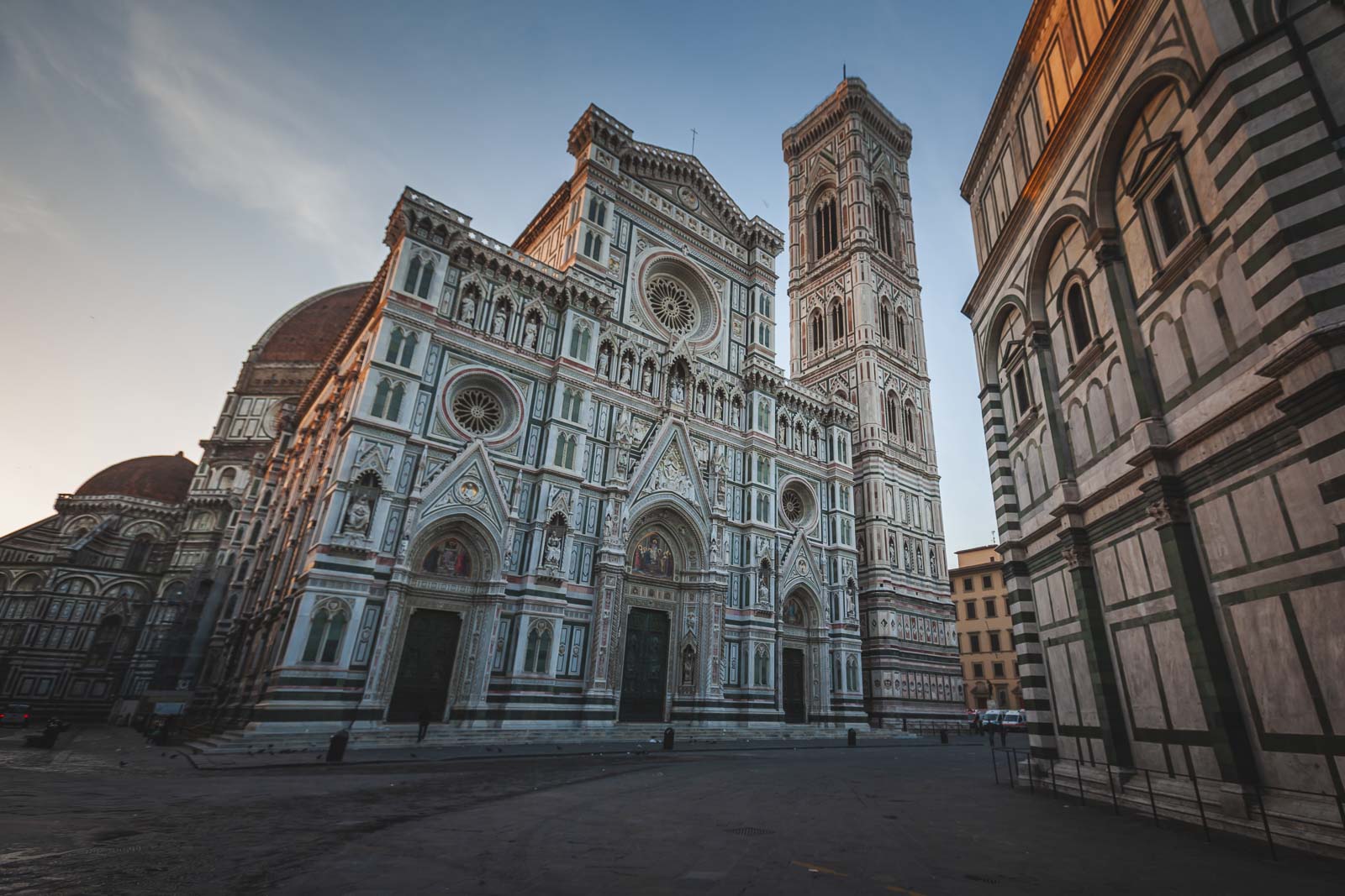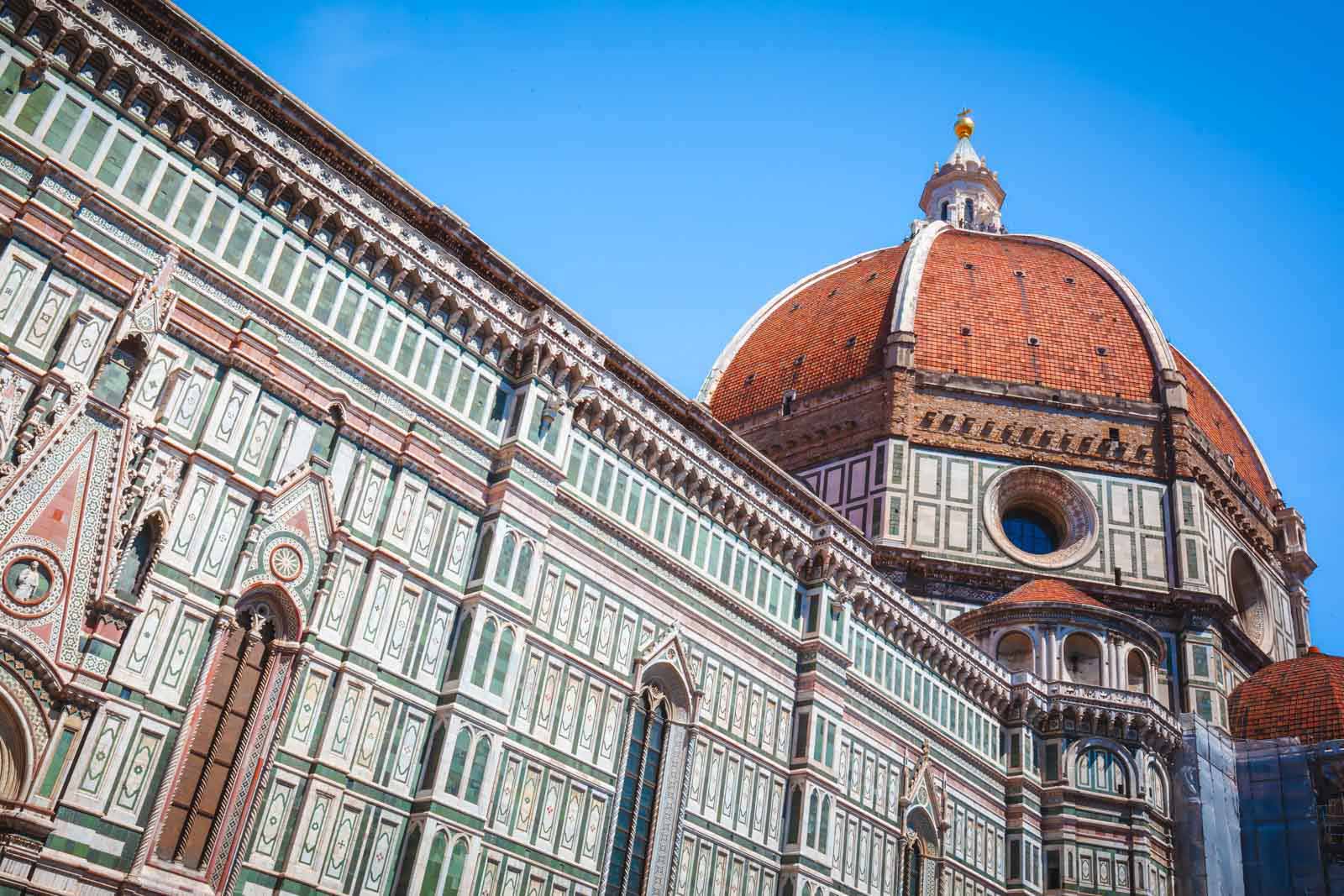 フィレンツェと同義の象徴的な建物がある場合、それはドゥオーモです。フィレンツェの歴史的な市内中心部に位置するドゥオーモ広場は、確かにフィレンツェの訪問する場所の最上部にあります。広場のフロントとセンターは、サンタマリアデルフィオーレ大聖堂(聖マリア大聖堂)のドゥオーモです。それは、頭上にそびえ立つ巨大なドームを備えたイタリアで最も有名な光景の1つです。