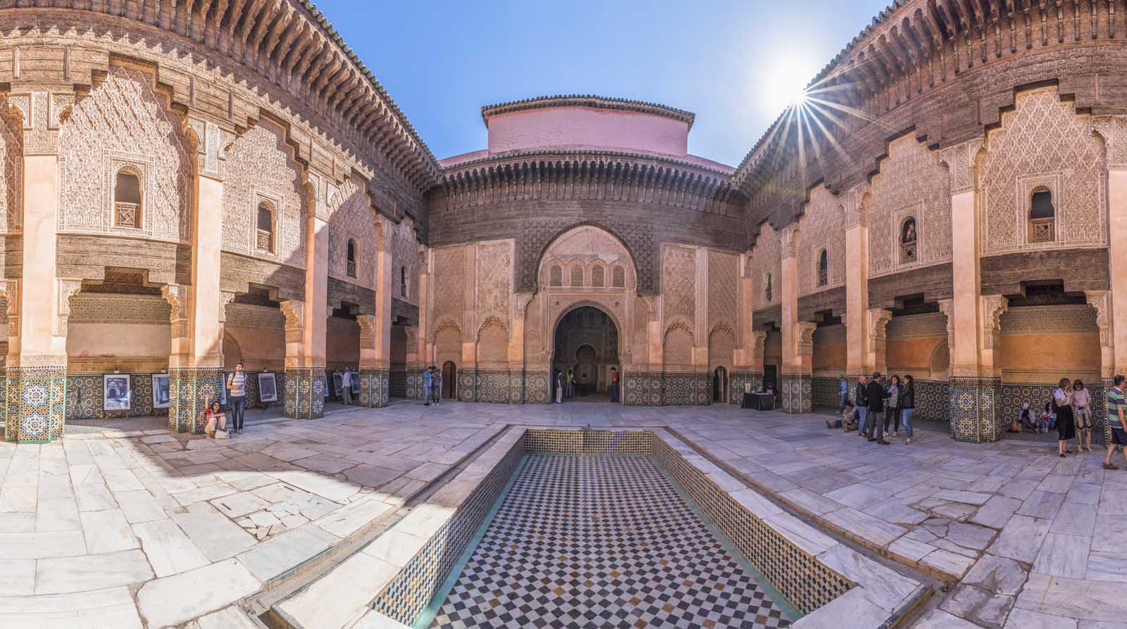 マドラサは元教育機関であり、ベン・ユーセフ・マドラサはモロッコで最大のイスラム学校でした。ドアの中を歩くと、まるで時間をさかのぼって、学生がホールを歩いて中庭を囲む寮で寝ているように感じます。