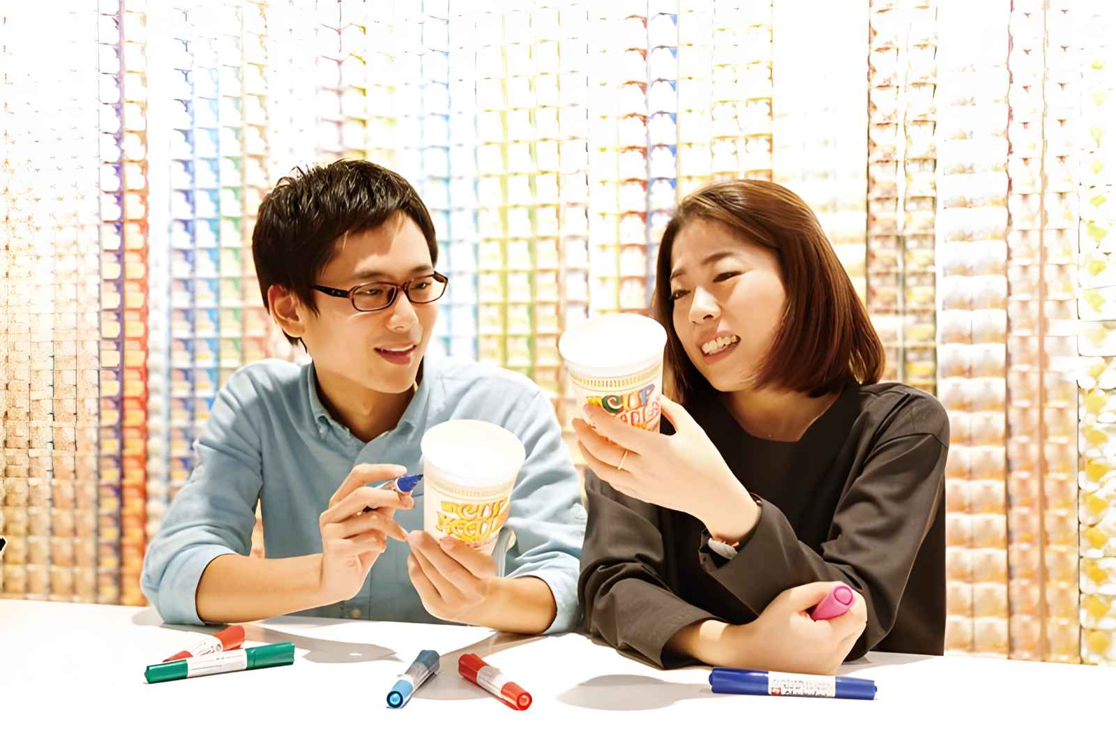 博物館の展示は、壁に取り付けられた無数のカップ麺で構成されています。インスタント麺の床から天井までのカップですが、カップ麺の彫刻と、インスタントラーメン製のステーションでもあります。チキンラーメン工場では、麺をゼロから作ることもできます。