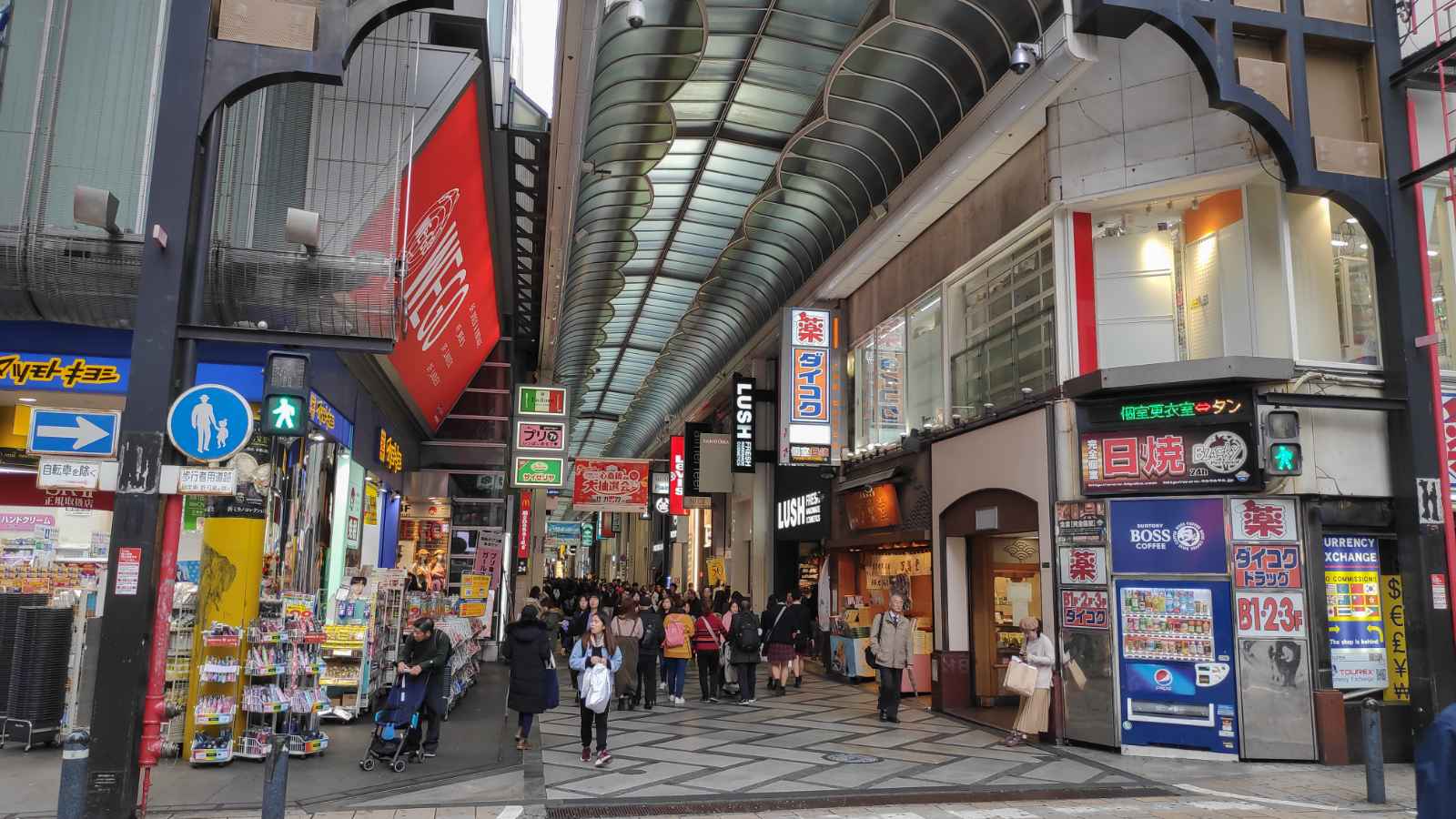 Shinsaibashi-Suji Streetのショップの平均営業時間は午前8時から午後11時までですが、店はすべて同じ営業時間を観察しているわけではありません。ナンバ駅は、ショッピング通りの入り口に最も近いです。