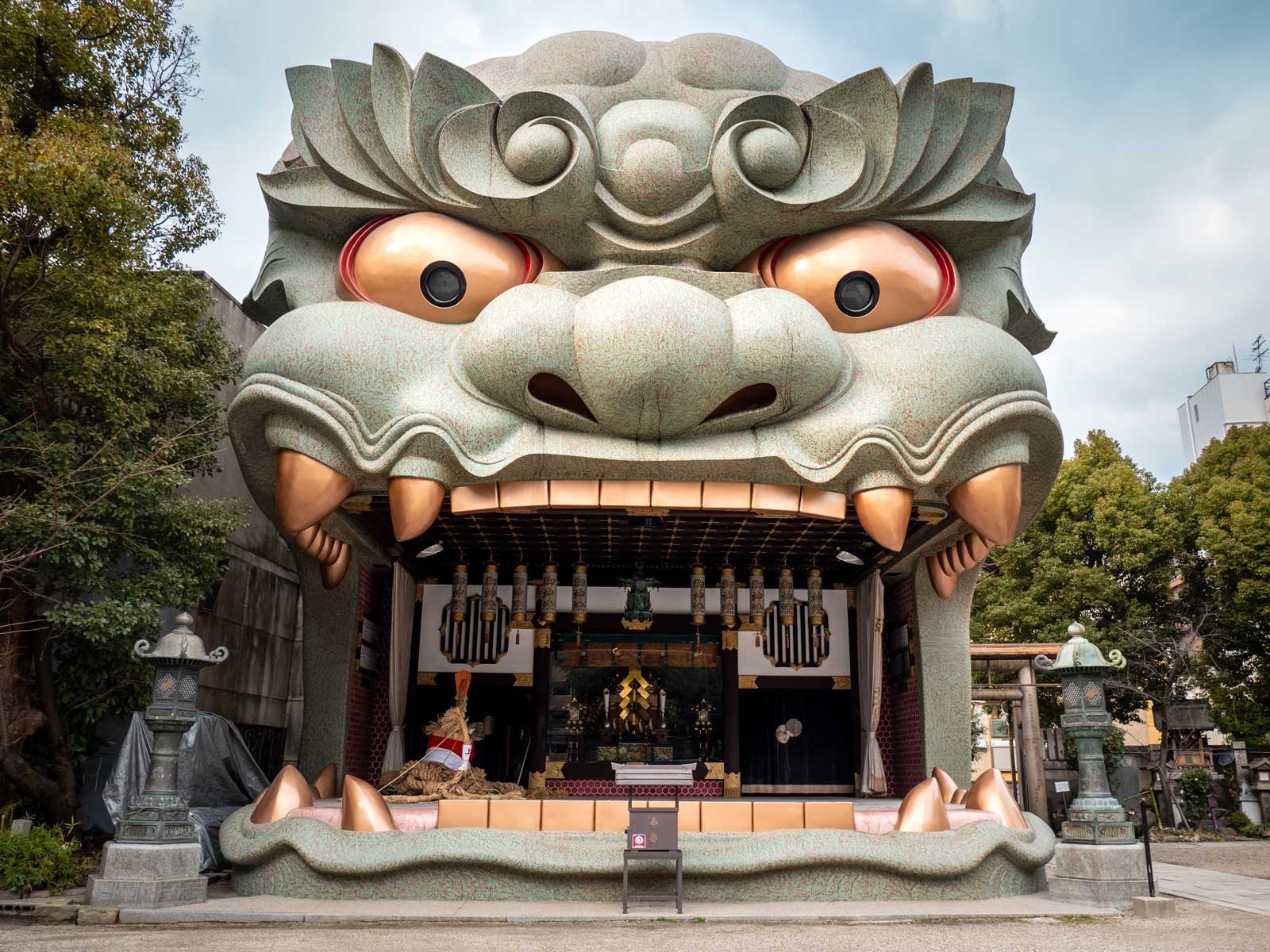 ナンバヤサカ神社は、大阪で最も有名な神社の神社の1つです。象徴的な大阪のランドマークになっているライオンの頭のような形をした小さなステージで最もよく知られています。
