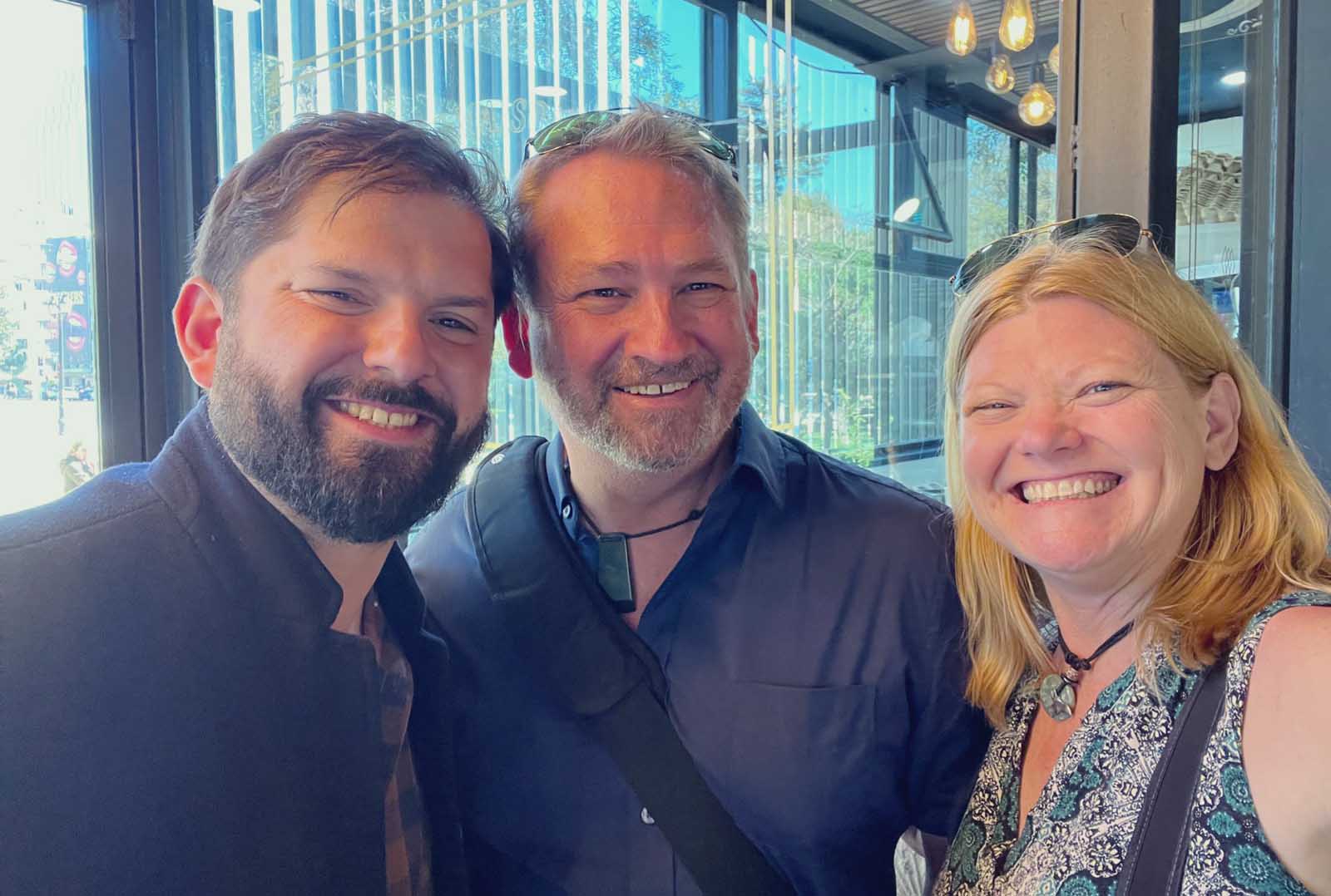 彼のガブリエル・ボリック閣下自然史博物館を訪れた後、私たちは通りを歩いて、公園を見下ろす素敵なテラスで昼食を食べました。私たちの昼食の間、人々はそこで食事をしている写真を男性に頼み始めました。次のテーブルに「この男は有名ですか?」と尋ねました。そして彼は、「彼はチリの大統領だ」と言った。 「ええ、そうだ」と言った。そして、マネージャーは言った、「はい、そうです!