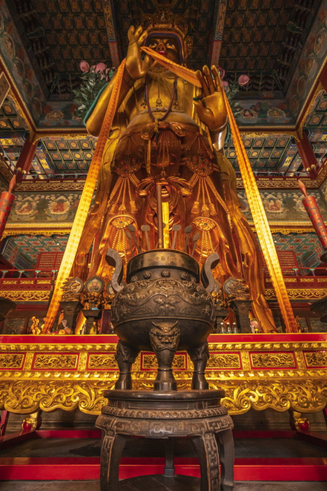 ラマ寺院は文化革命から32年間閉鎖されましたが、1981年に再開されました。修道士は勉強し、観光客が18メートル(69フィート)の高さに立っている巨大なサンダルウッドの仏が立っているのを見に来ています。仏は、一本の木から彫られた最も背の高い仏のために世界記録のギネス本を保持しています。