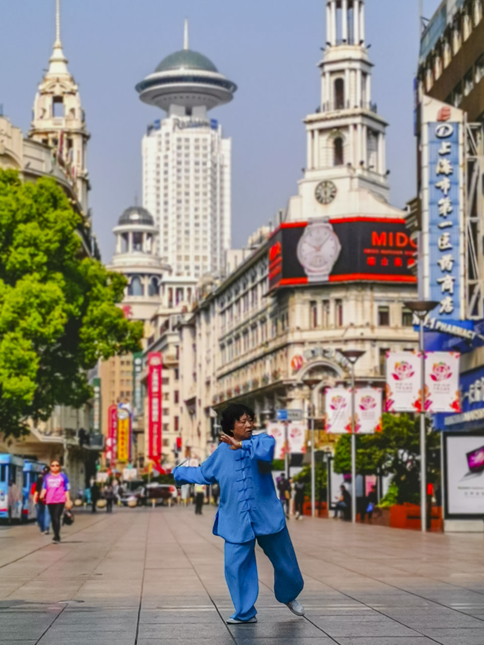 午前中、中国の高齢者は太極拳と街で踊ります。この時点では静かで落ち着いていて、コーヒーを手にした状態で景色を眺めるのに最適な時期です。夜、ネオンライト電源を入れると、通りを歩いている人の狂気です。忙しくて忙しいですが、見逃せません。