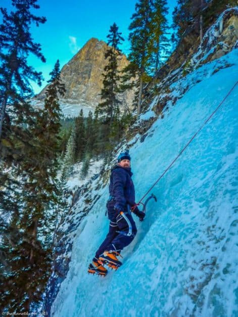 デイブアイスクライミング私たちはいつもこれを試してみたいと思っていましたが、昨年はキャンモアアルバータでチャンスを得ました。アイスクライミングは、確実に足を踏み入れることを心配する必要があるだけでなく、氷が壊れてパートナーに落ちたり、あなたを連れて行ったりすることを心配する必要があるクレイジーな冒険です。