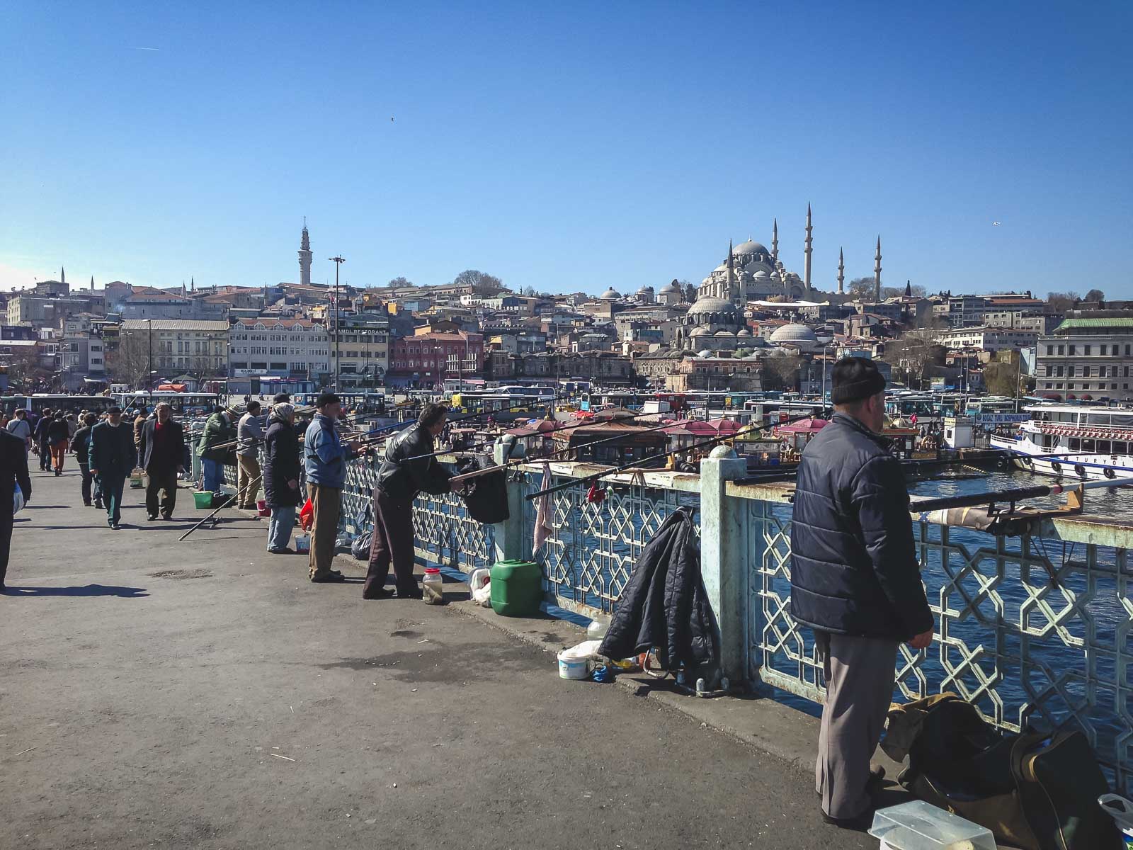 イスタンブールへの最初の訪問中に、ガラタ橋を毎日歩いて行くのは簡単でした。私たちはアパートのレンタルに近づいていました。これは、青いモスク、ボスホルスの景色、黄金の角の最高のイスタンブールの景色を眺めるための美しい場所です。家族が景色を眺めながら散歩している間、喜んでおしゃべりしている友好的な漁師の列に注目してください。安価な食事、特においしい魚のサンドイッチに最適な場所です。