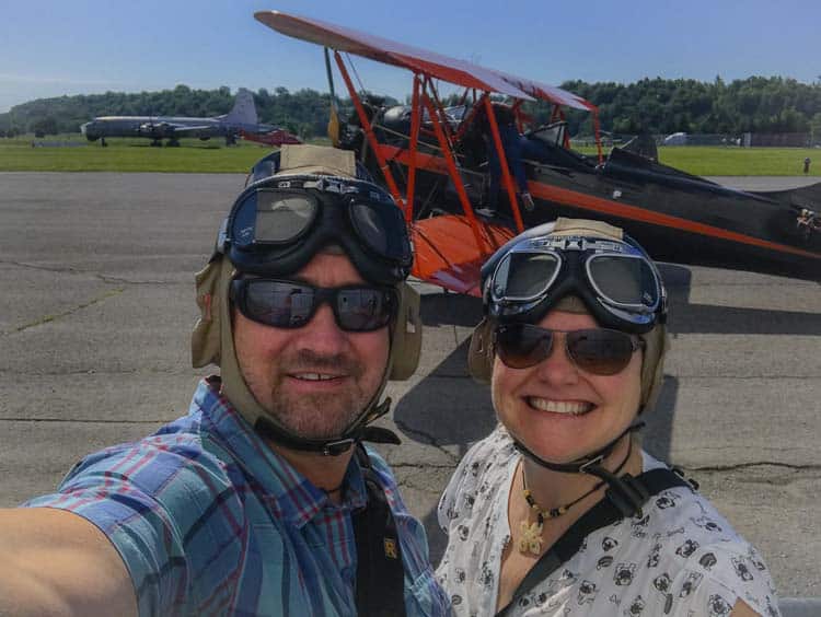 1939年頃のWaco UPF-7のオープンコックピット複雑さに乗り込み、25分間のフライト中に並んで座っていました。これは、議会の建物のパスを含むガティノーヒルズとオタワのダウンタウンを紹介しました。私たちのパイロットは、滑走路に戻る前にガティノーをいくつか操作しました。それは熱心でした!