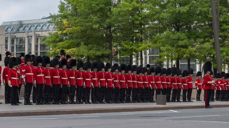カナダは、イギリスのように、独自の警備員を変えています。街で2つの異なるものをキャッチできます。警備員の変更は、WW1記念碑で毎日起こります。パイパーと2人の警備員が、核兵兵の墓で職務を変えて、それは小さくても興味深いです。議会の大きな光景は必須であり、6月から8月までの午前9時50分に議会の丘の東芝生で毎日豪華な儀式が行われます。