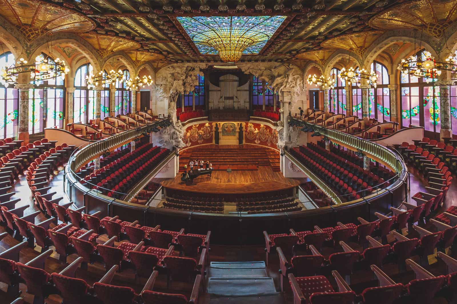 ツアーは、コンサートホールとその華やかなガラスの天井、ステンドグラスの窓、カラフルなデザインなど、パラオデラムシカカタラナの内部を見るために予約できます。それは非常に印象的であり、これはバルセロナで私たちのお気に入りの場所の1つだったので、それは間違いなく中に入る価値があります。
