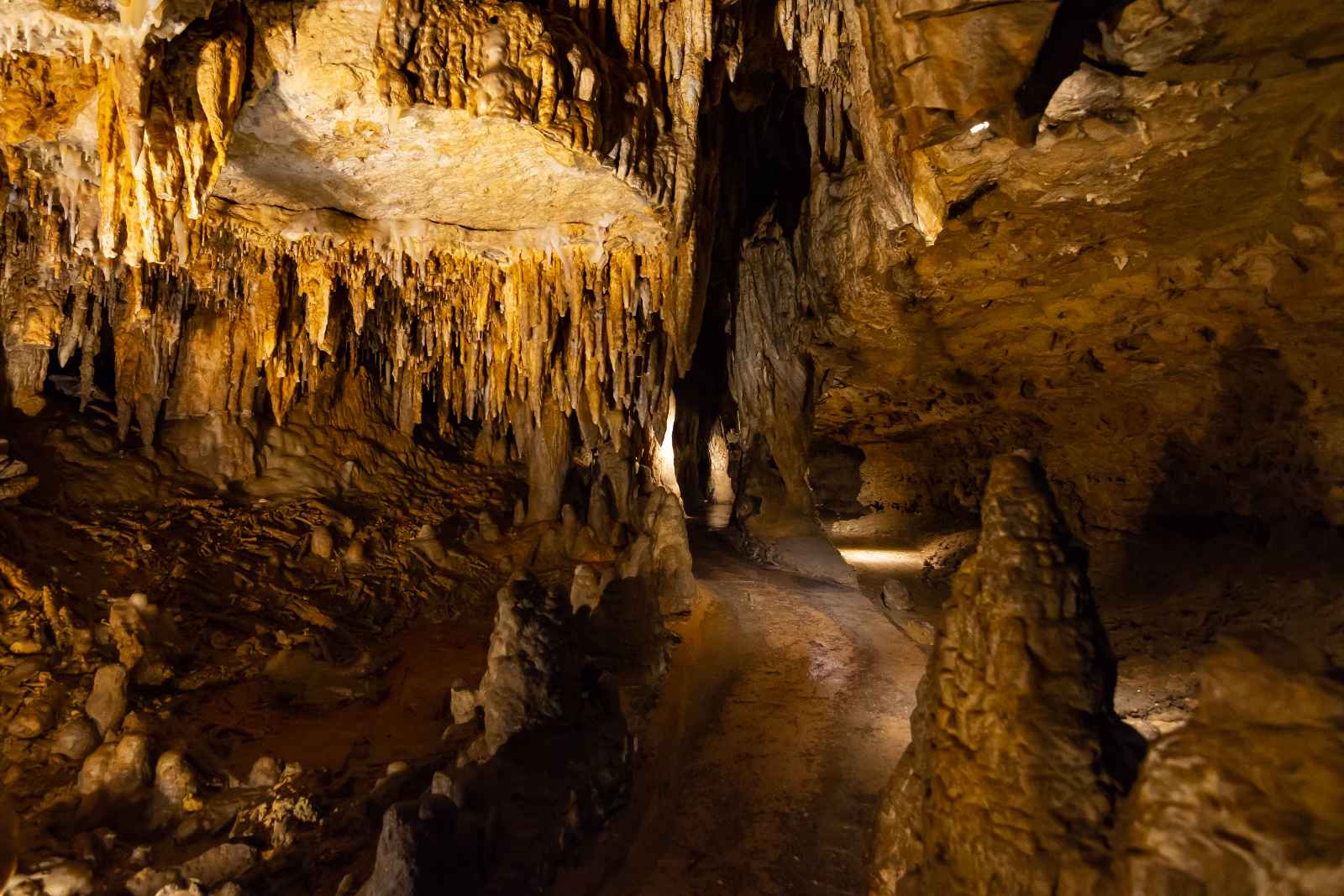 1939年に発見されたこの洞窟は、stal乳石、石lag、その他の鉱物層の膨大な範囲を見るためのツアーを提供しています。
