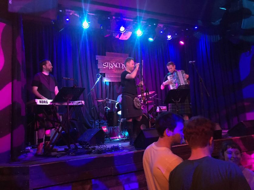 StramashのCeilidhバンド夕食後、角を曲がってカウゲートに向かい、スコットランドのシリッド(伝統音楽とダンスのあるパーティー - 心配しないでください、すべての動きを教えられないでください)を楽しんでください。
