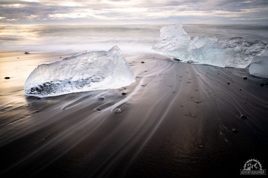 川から川を下って大西洋まで出て行くと、海岸で洗い流される氷山で有名です。最善のことの1つは、日の出のビーチに沿って散歩に行くことです。それは、氷山が本当に海岸を散らかっているように見えるときです。これらの人気のある停留所はどちらもアイスランドサークルルートにあります。