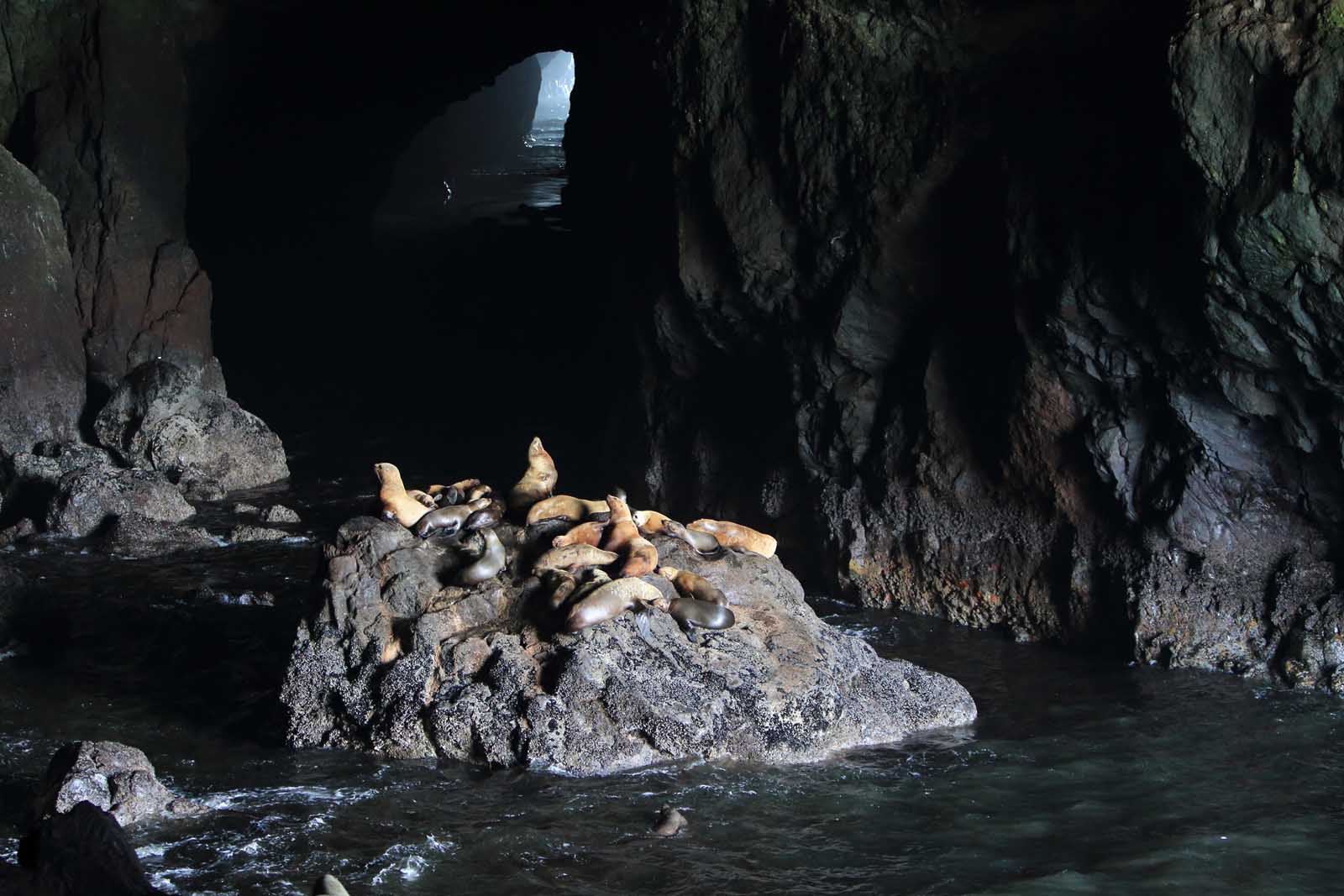 恒星のアシカのほかに、洞窟の壁には、港のアザラシや海鳥など、さまざまな海洋動物が生息しています。アシカの洞窟を訪れるのに最適な時期は、アシカが最も活発な冬と春の月です。この間、訪問者は、洞窟の外の岩の上で、洞窟に何百ものアシカを見ることができます。