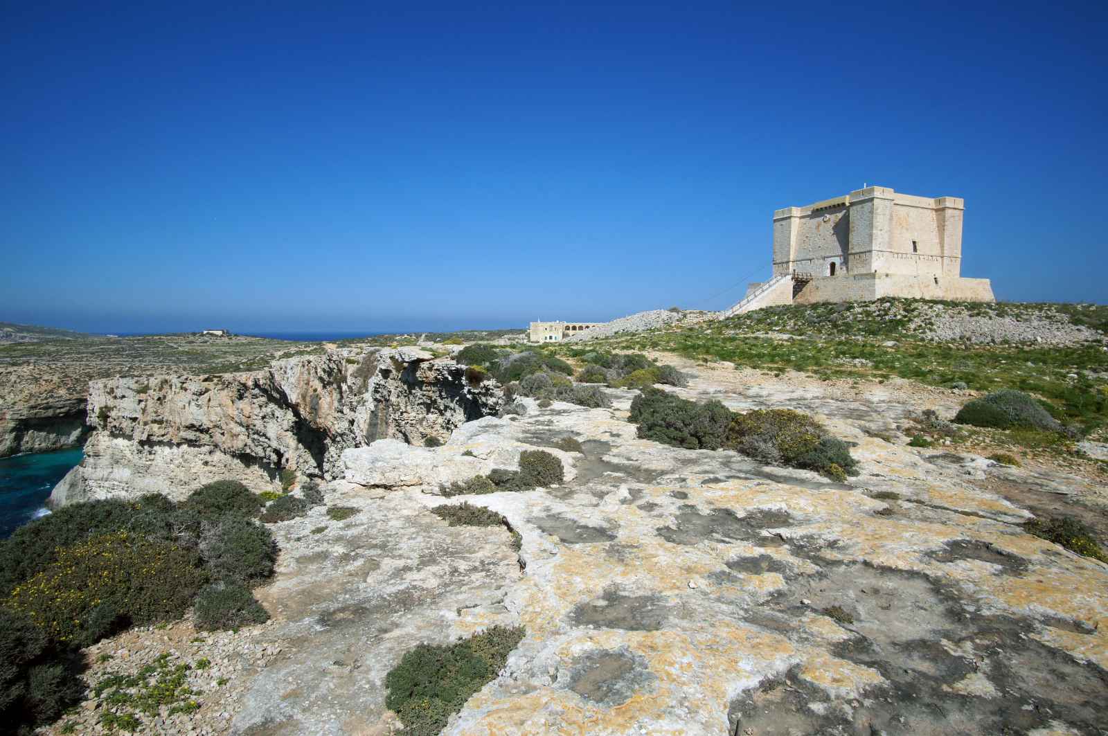 コミノの小さな島と小さなコミノットの間にある青いラグーンは、地中海の中心部に楽園のスライスを提供する牧歌的なスポットです。このきらめくラグーンは、マルタの太陽の下で輝くように見える活気のある紺seaの海で有名で、それを取り巻く険しい風景とはまったく対照的です。