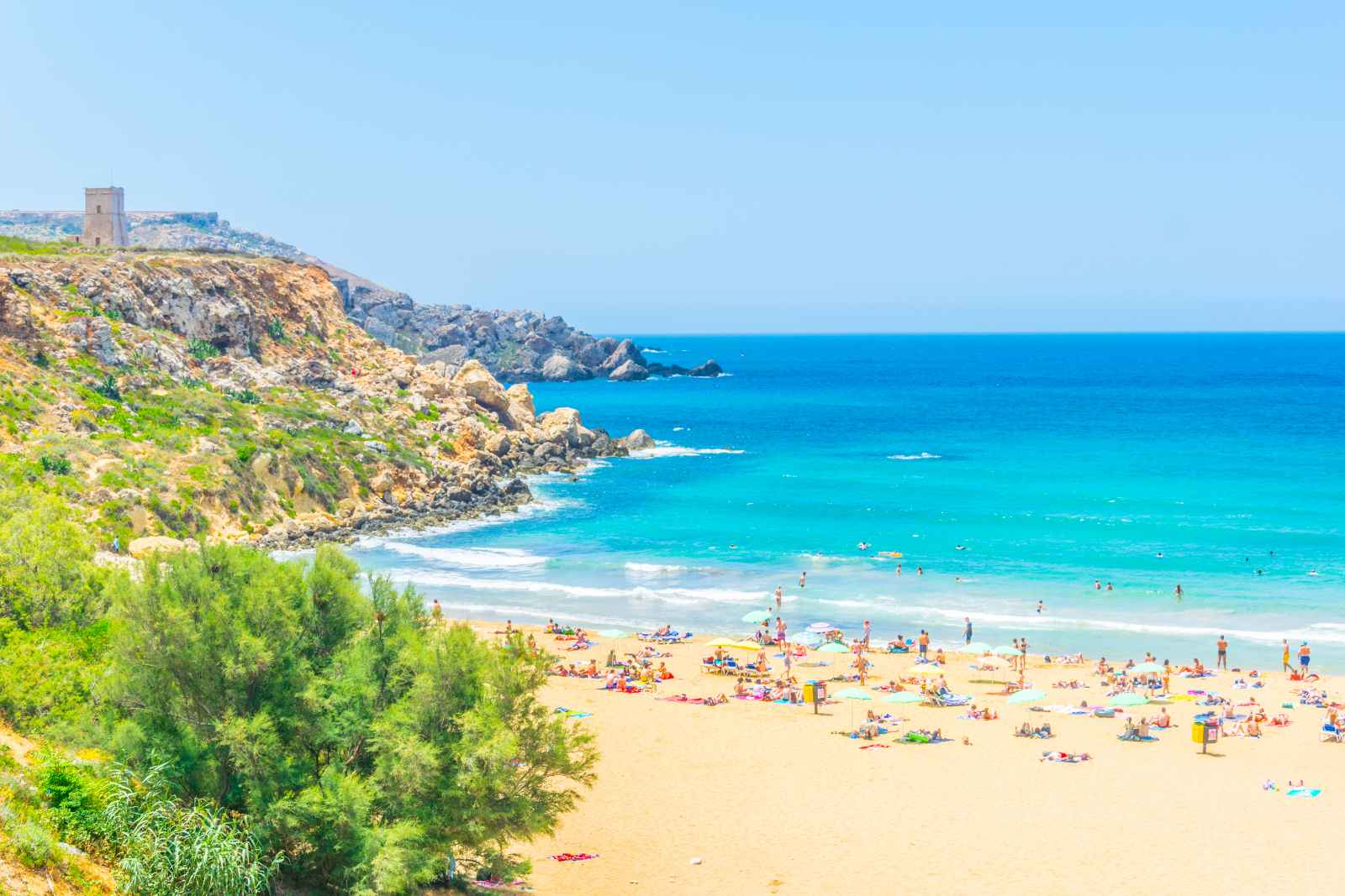 ゴールデンベイは、マルタで最も人気のある美しい砂浜のビーチの1つであり、リラクゼーション、楽しい、そして見事な自然の景色の完璧なミックスを提供しています。広くて黄金の砂浜のビーチは、地中海の雄大な崖とターコイズブルーの海に囲まれており、ビーチの日にはがきで完璧な背景を提供しています。