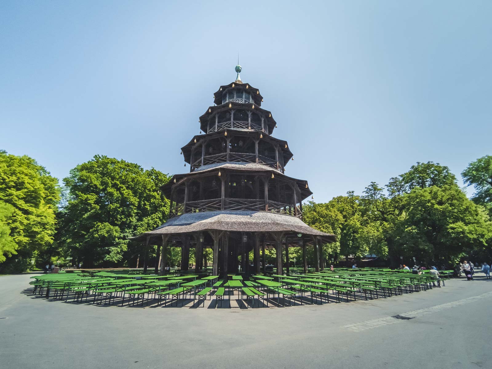 Chinesischen Turm(The Chinese Tower)は、イングリッシュガーデンにある2番目に大きいビアガーデンです。これは、栗の木の下に座っているときにパイントを止めるのに最適な場所です。中国の塔をモデルにした、これはパイントに行くのに本当にクールな場所です。