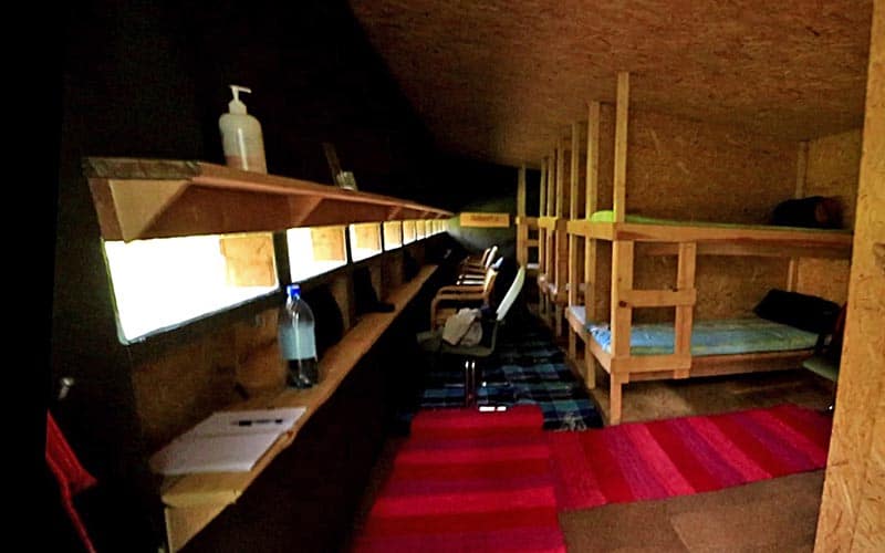 皮は非常によく作られており、快適な椅子、カメラレンズ用に特別に設計された窓、素晴らしい野生動物の写真、乾燥したトイレ、寝袋のある基本的なベッドの列全体を撮るように設計されています。