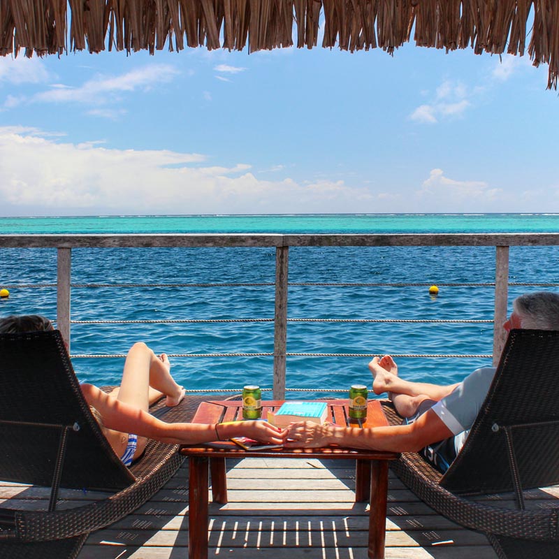 リゾートから提供されたシュノーケリングギアを投げて、下のサンゴとカラフルな魚の万華鏡を探索することができます。何をしても、ムーレアへの訪問で水上バンガローに滞在することを含める必要があります。