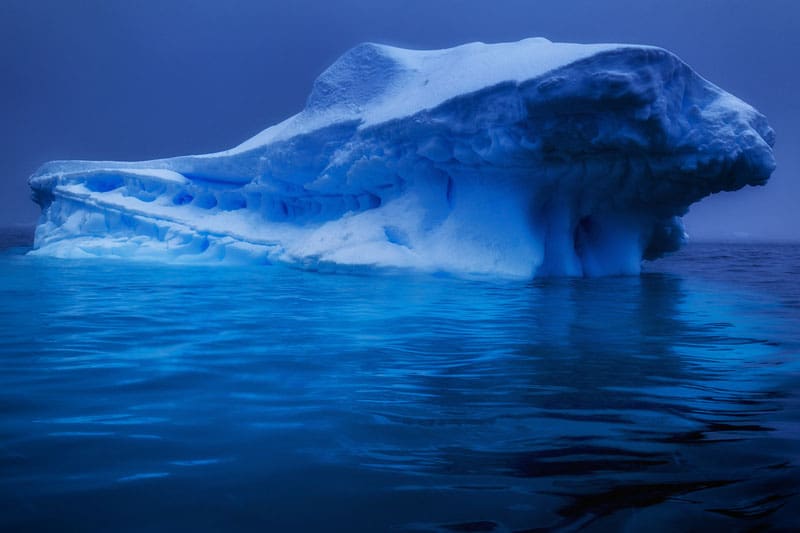 氷山の青い氷の美しい層彼の見事な南極の写真の多くは、フライトをキャッチして次の場所に移動するために、日の目を見たことがありませんでした。