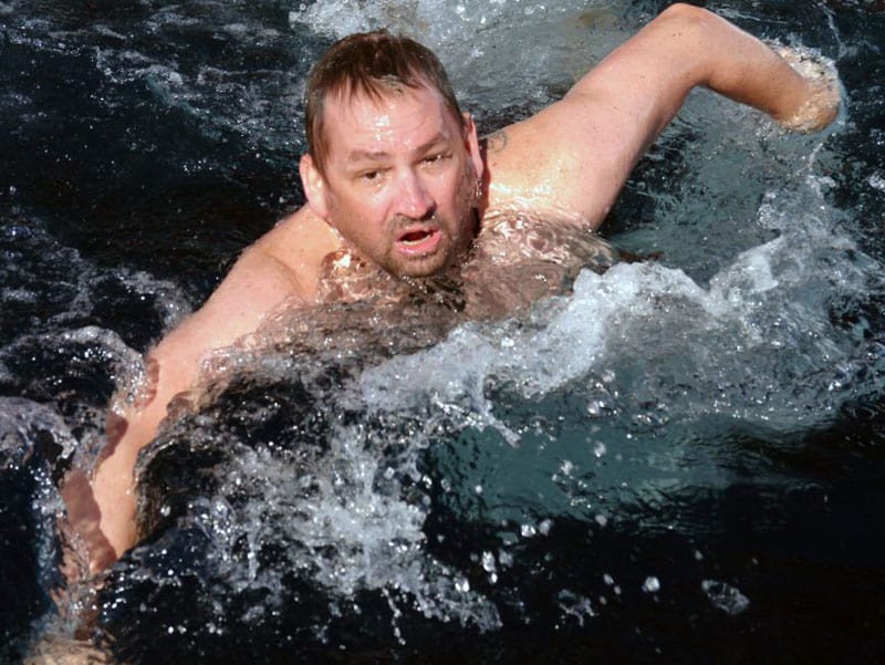 ポーラープランジ:デイブは冷たく見えますそれは必須ではありませんが、すべての航海は、南極半島の極寒の海に飛び込む機会を乗客に提供します。