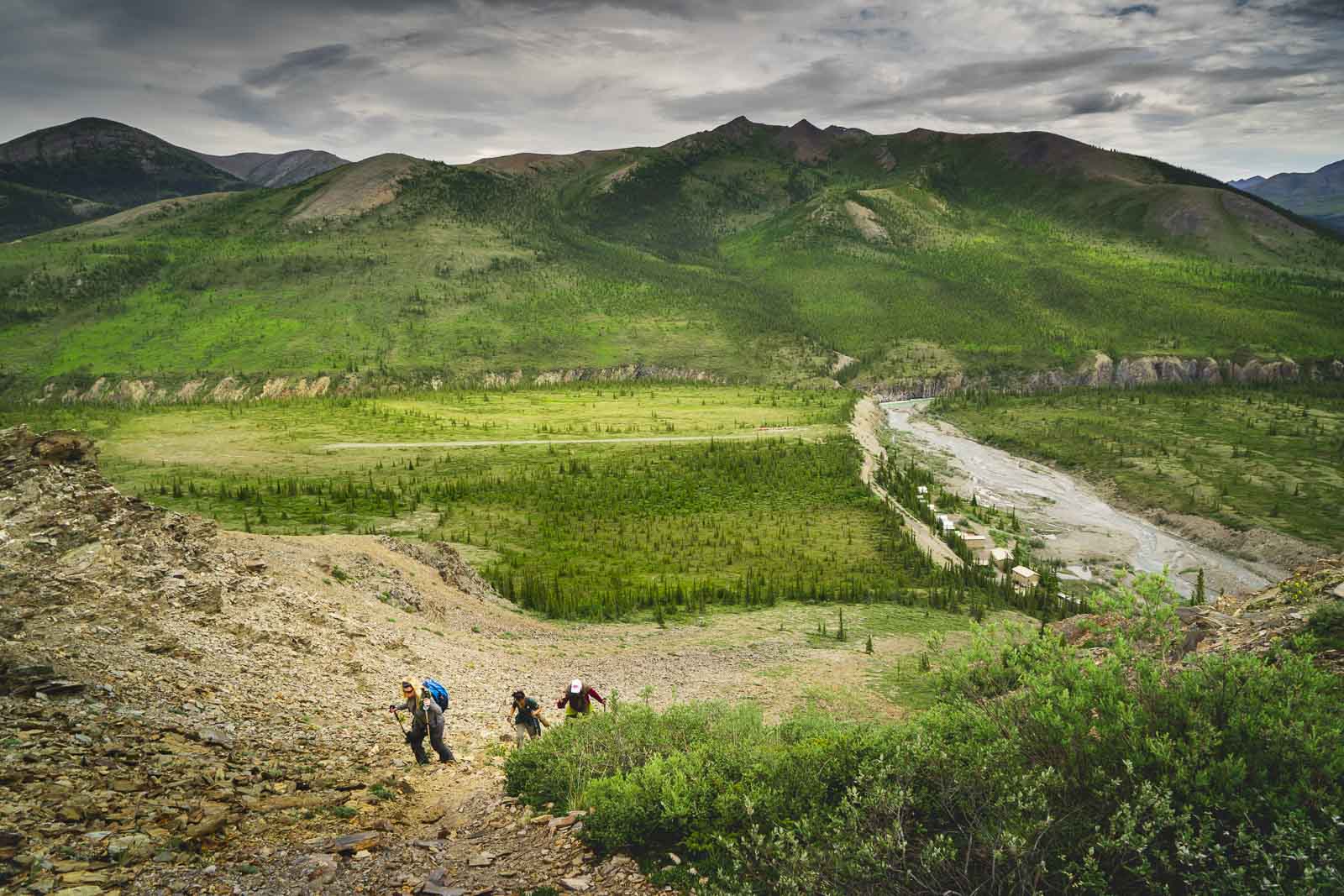 パークス カナダを通じて、イギリス山脈を巡るガイド付きハイキングに出かけるツアーを予約できます。ここはグリズリー ベアの国なのでガイドの同行は必須です。実際、公園のテントはグリズリー ベア ハイウェイ沿いに設置されています。北米で最も孤立した場所の 1 つであるここでのハイキングは、真の自慢になります。