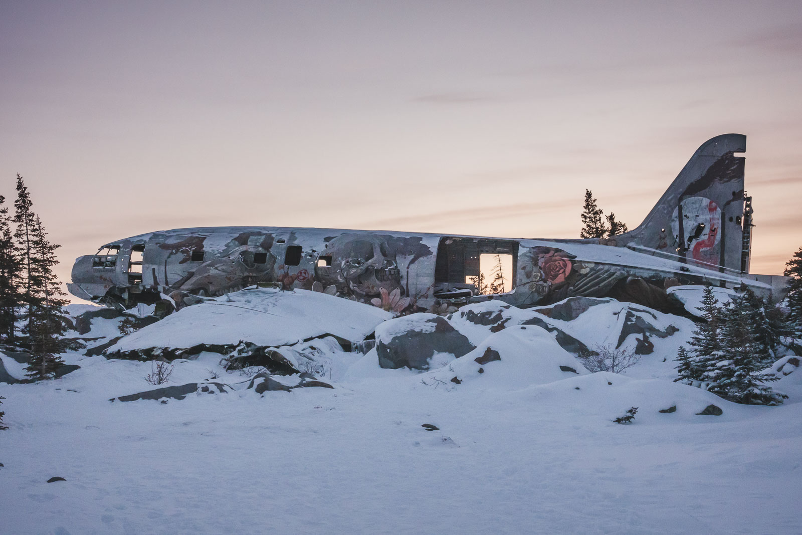 ミス・ピギーのグラフィティアートチャーチルに訪れるのに最も気まぐれな場所の1つは、ミスギャギの飛行機の難破船です。 Lamb Airways Ltdが所有するCurtiss C-46ツインプロップ貨物航空機は、チャーチルに飛んでいるときに貨物機がしばしば過負荷になったため、Miss Piggyと名付けられました。 1979年11月13日に離陸した直後に、エンジンのトラブルが発生した後、クラッシュしました。それ以来ずっと崖の端にあるその代わりに休んでいます。今日、それは落書きで覆われており、チャーチルで最も人気のあることの1つです。