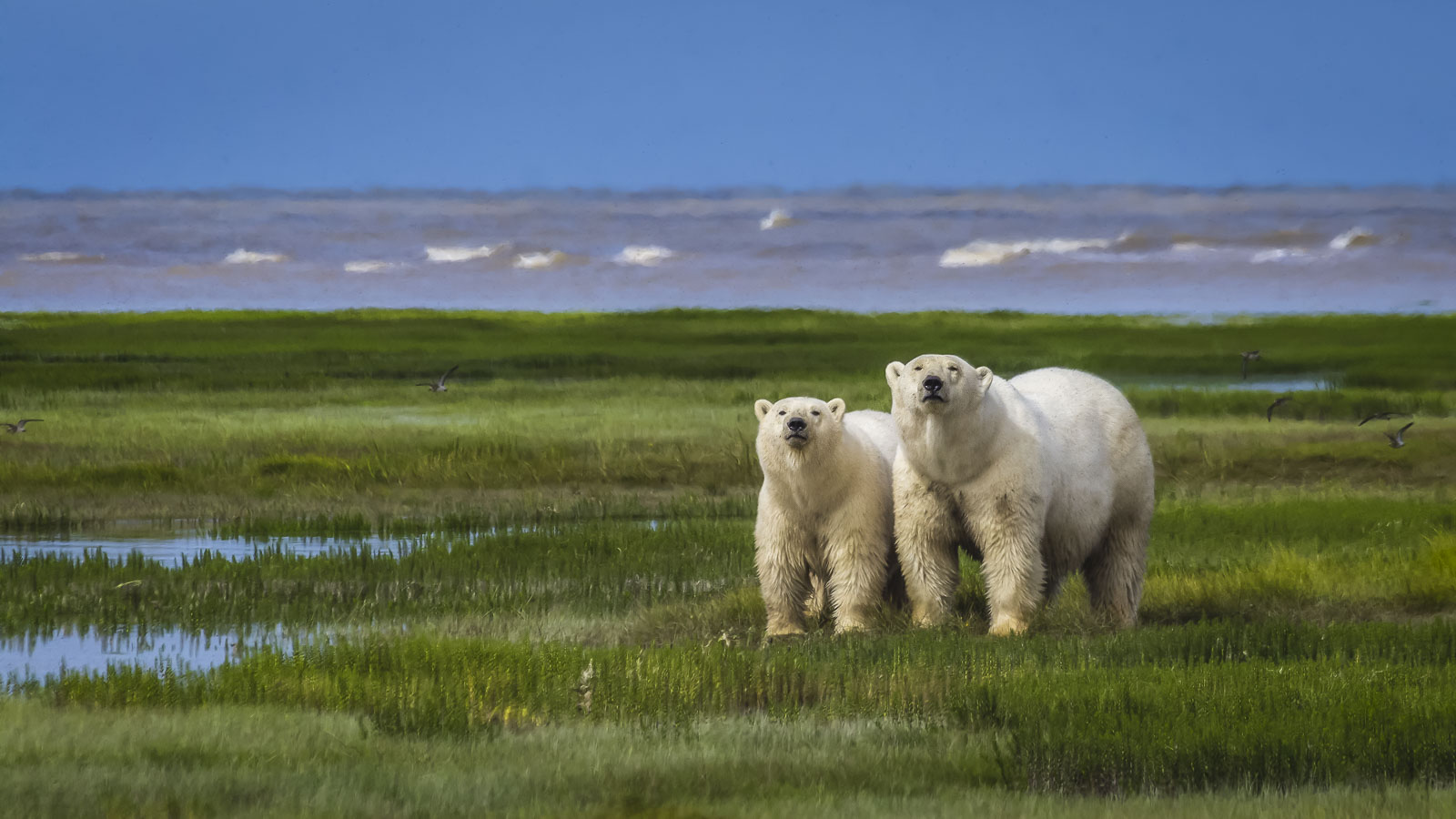 自然の生息地で雄大なチャーチルホッキョクグマを目撃するのに最適な時期は、特に10月と11月の秋の数か月です。これは、これらの壮大な生き物がハドソン湾の海岸に向かって移動を開始し、毎年恒例のシールハントを始めることができるように氷が形成されるのを待っているときです。しかし、私たちは8月にハドソン湾の海岸でママとカブスがリラックスしているときに素晴らしい出会いをしました。ホッキョクグマの白いコートと緑のツンドラ風景のコントラストを見るのは、ユニークな体験です。