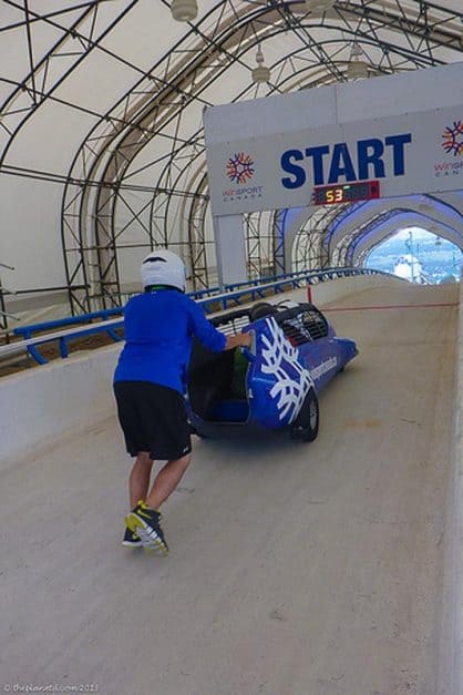 カルガリーでは、ボブスレーラン全体を上から下まで行うことができます。私はそれが終わりそうだと思っていましたが、私たちはただ続け続けました。私たちは銀行の後に投げて銀行を越えていました。私たちは3GSの効果を感じました、そして、それらの高い角を回るスナップを感じるのはワイルドでした。ボブスレーは夏と冬の両方を走ります。