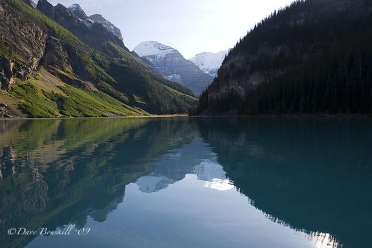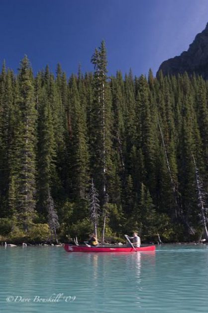 パドリングデイブは、私たちが持っていた「本物のカナダの瞬間」についてコメントしました - 雄大な湖のルイーズのロッキーでカヌーをしています。穏やかで快適で、水はガラスのようでした。