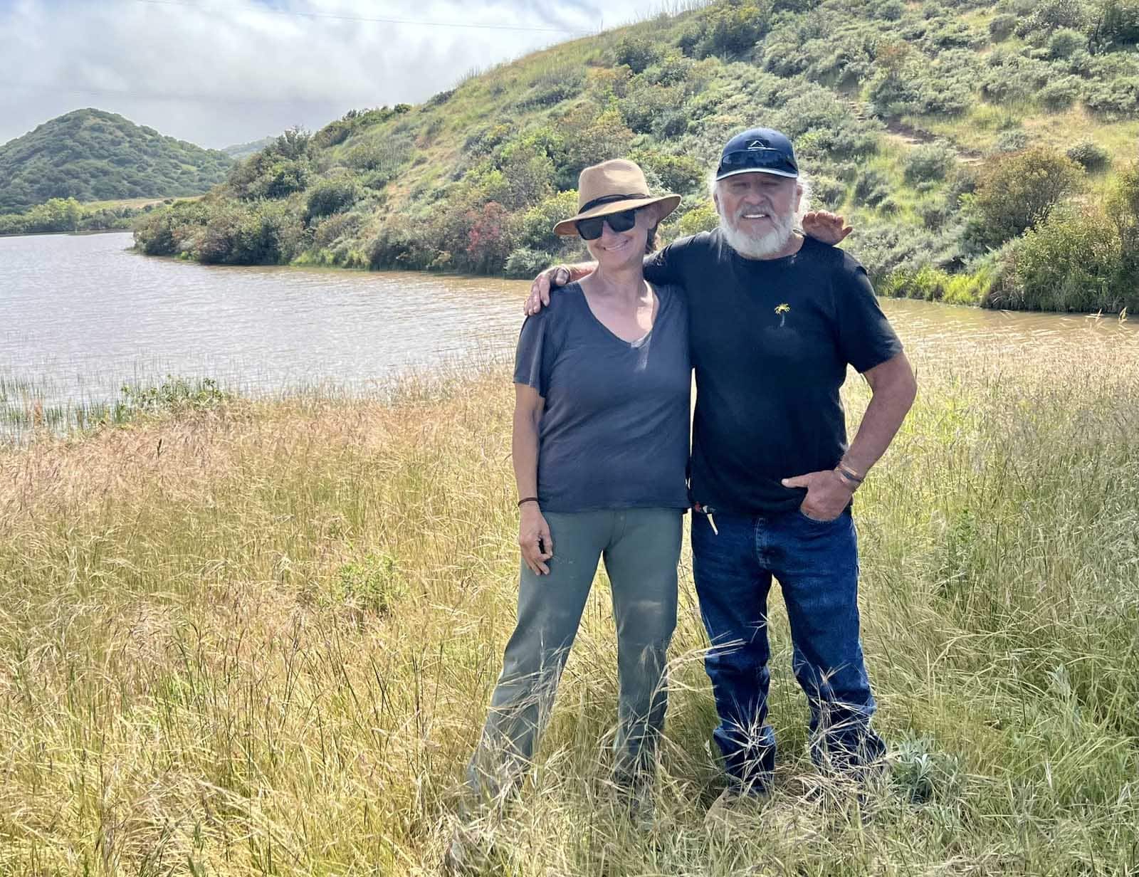 15分後、私は妻とロペスと一緒に、ヘイプレス貯水池と呼ばれるかわいい水域の横に立っていました。薄い緑色のブラシが点在する小さな丘は、ふくらんでいる白い雲が点在する純粋な青い空の下に水の両側に急降下しました。