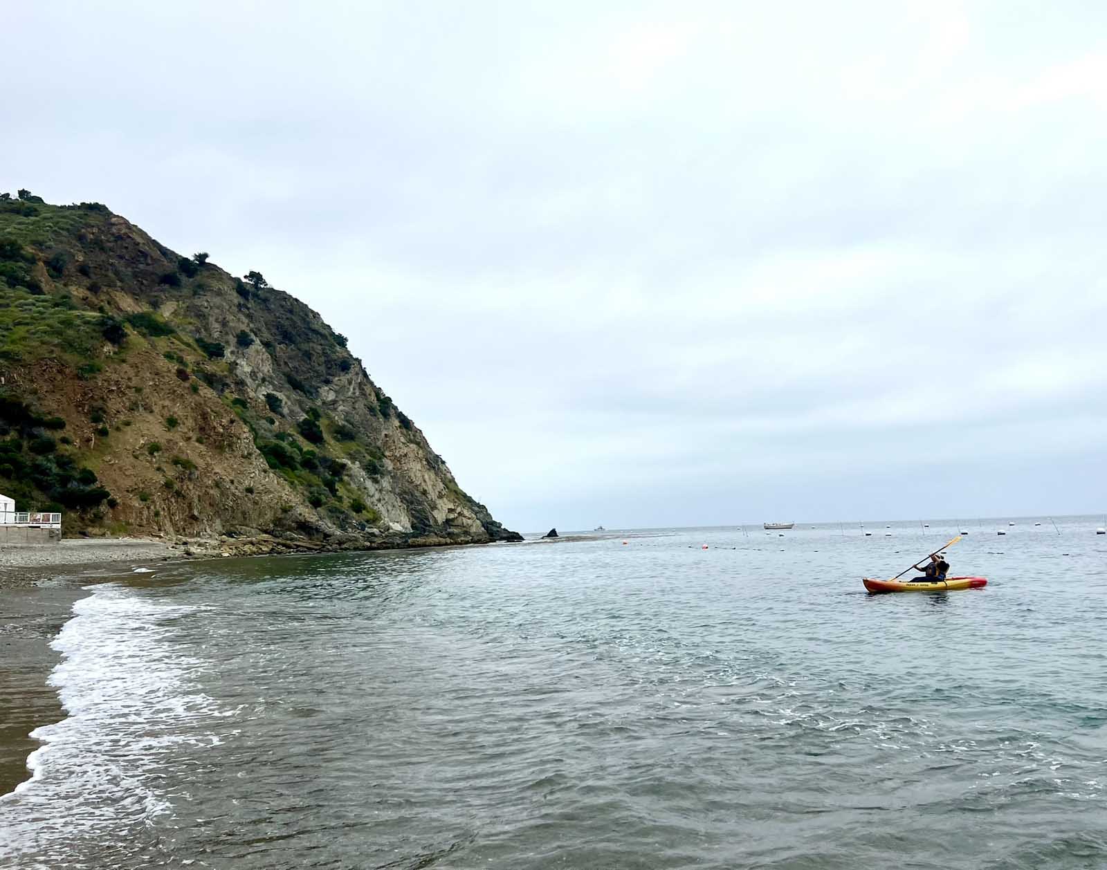 アバロンの多くの場所でカヤックを借りることができます。 Descanso Beach Clubで、町から少し散歩し、静かなパドルを楽しみました。 Catalina Islandは、ガラスの底ボート、潜水艦の航海、2つの港への旅行など、たくさんのボートツアーを運営しています。