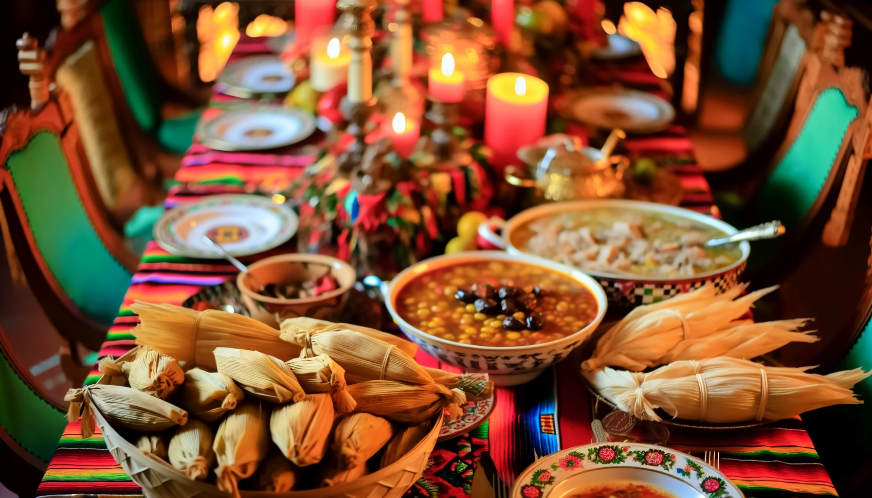 メキシコのクリスマスイブは、ノーシュ・ブエナとして知られる喜びと一体感の時です。家族が集まってお祝いの食事を共有します。伝統的な料理やタマレスやポゾールなどのメキシコ料理が中心になります。贈り物の交換とクリスマスライトの温かい輝きは、この楽しいごちそうを伴います。