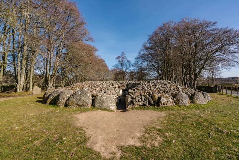 Clava Cairnsは、約4、000年前に建てられた先史時代の埋葬ケアンズ(通常、記念またはランドマークとして建てられた荒い石の塚)のよく保存されたグループで構成されています。