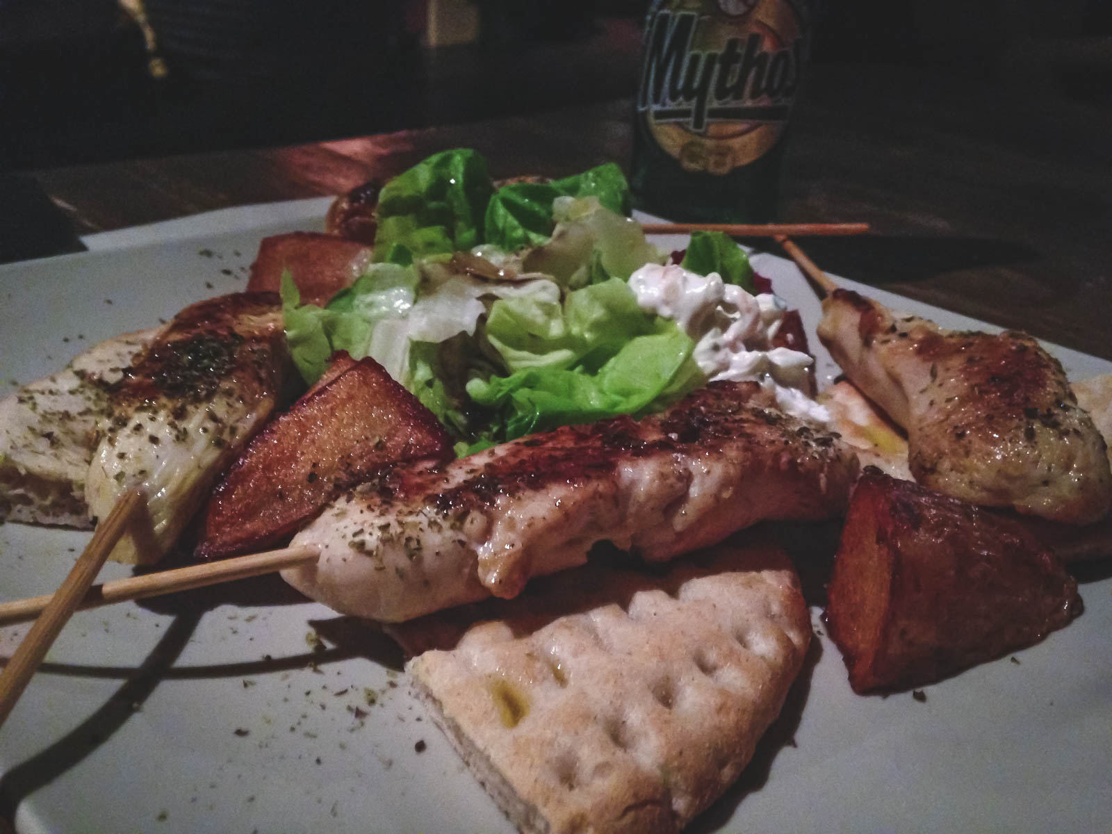 本当に本物のギリシャの体験のために、大胆で試してみてください、スティファド、ムサカ、またはぬいぐるみのウサギを試してください。メインコースには、野菜、フライドポテト、サラダが付属しています。それに加えて、テーブルの上にピタのバスケットがあります。たくさんの食べ物だと言った!