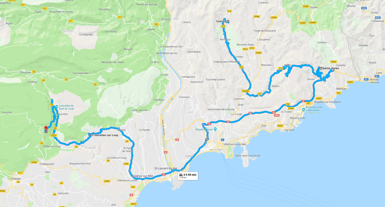 美しいフランスの村のコラージーは、セントアグネスの村から40km(上記参照)、ニースから30kmです。