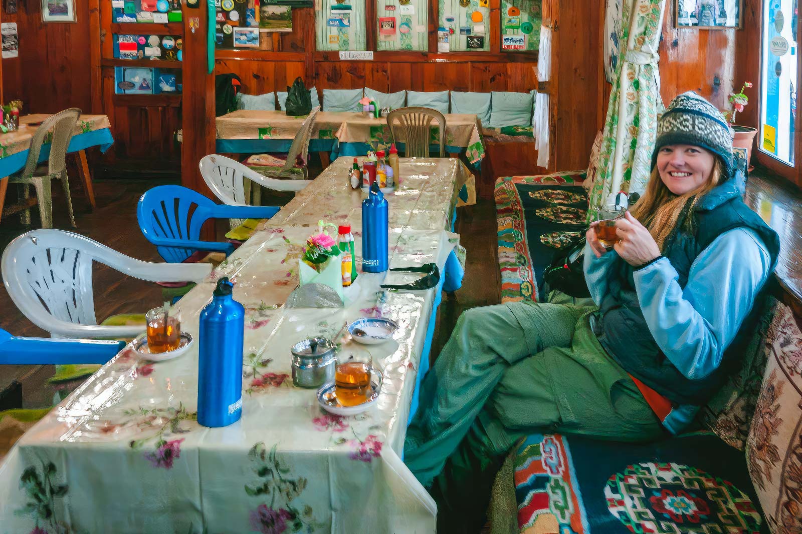彼女のエベレストベースキャンプトレックはすでに突然の終わりに近づいていました。今後の日が大変だったので、リラックスすることを思い出させました。だから私たちは茶屋に戻ってリラックスして私たちの旅の残りの部分に備えました