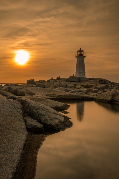 美しいペギーの入り江の夕日ペギーの入り江は、ノバスコシア州で最も人気のある観光地です。ハリファックスからわずか45分の場所にあるペギーの入り江は、100年前の灯台を収容する素敵な漁村です。岩の多い露頭に位置することは、カナダで最も写真スポットの1つでもあります。