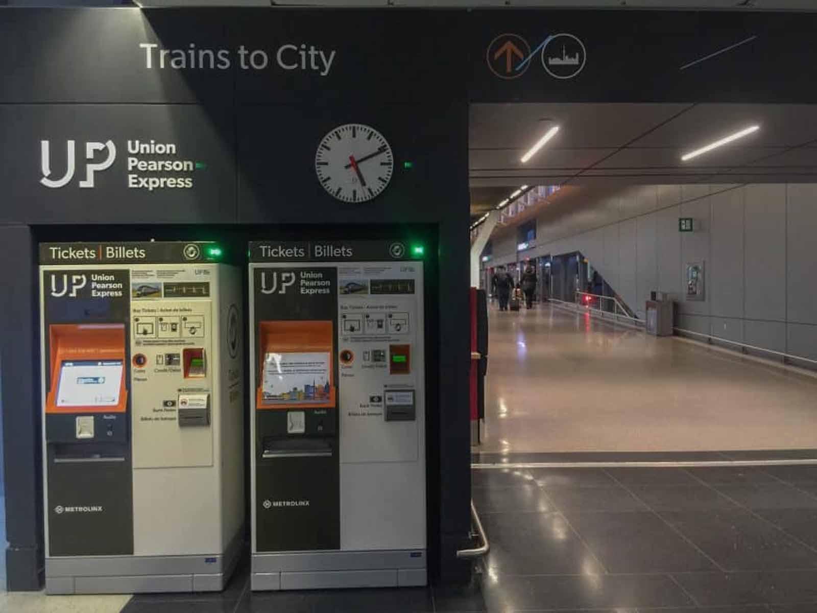 - ピアソン空港から、アップエクスプレストレインに乗ってトロントのダウンタウンにあるユニオン駅まで行きます。